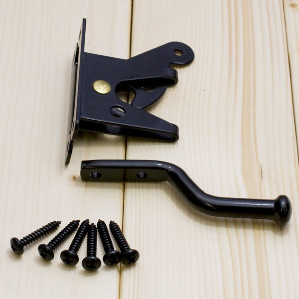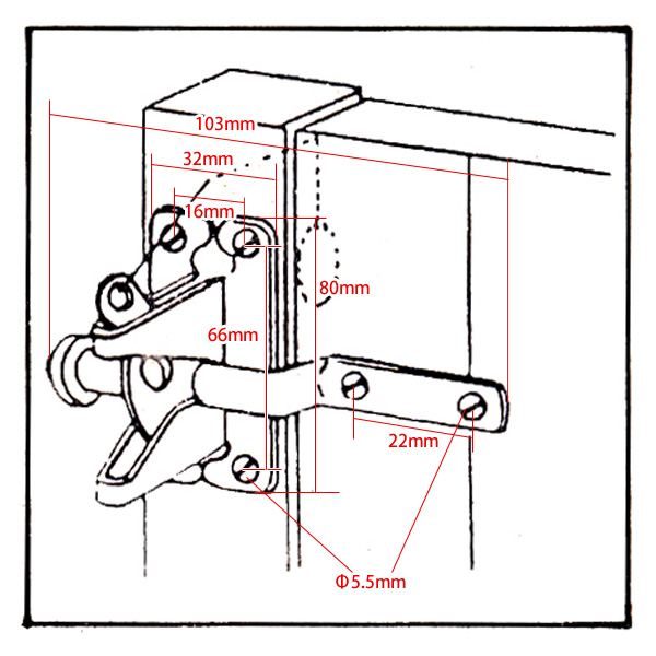 扉が閉まると自然に鍵が閉まる仕組み。本体は扉内側に取り付け外からはヒモを引っ張り解錠。