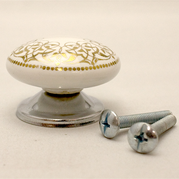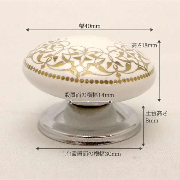 セラミックつまみ(ホワイト/ゴールド)IK-349
