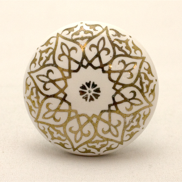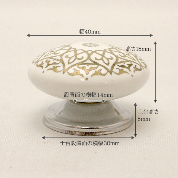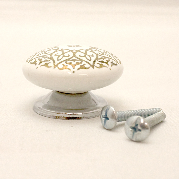 セラミックつまみ(ホワイト/ゴールド)IK-348