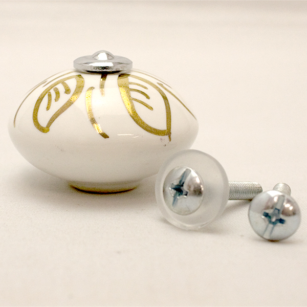 セラミックつまみ(ホワイト/ゴールド)IK-347
